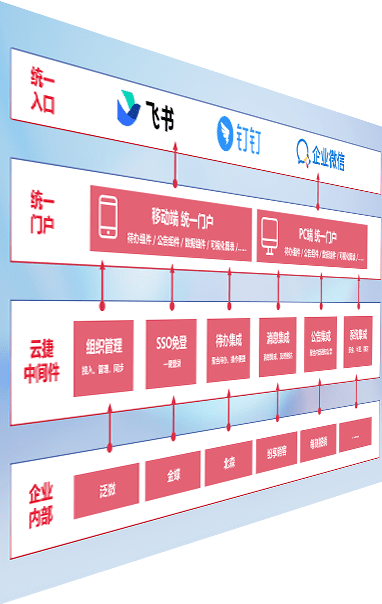 对协作平台提供支持服务,,,支持企业应用与协作平台对接,,包含组织同步、、消息集成、、待办集成等。。。支持目前主流的协作平台:钉钉、、、、企微和飞书。。。
